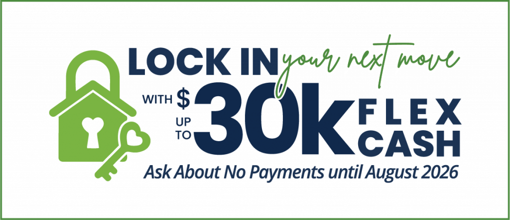 Get up to $30,000 in Flex Cash on select homes. Ask about no payments until August 2026.