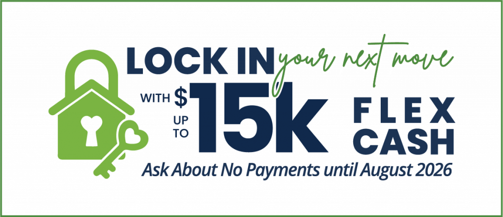 *Offer valid on select homes under contract by 04/30/2026. Up to $15,000 Flex Cash may be used toward closing costs or interest rate buy-downs with use of builder’s preferred lender. Limited-time offer, subject to change without notice. Contact an agent for full promotion details.